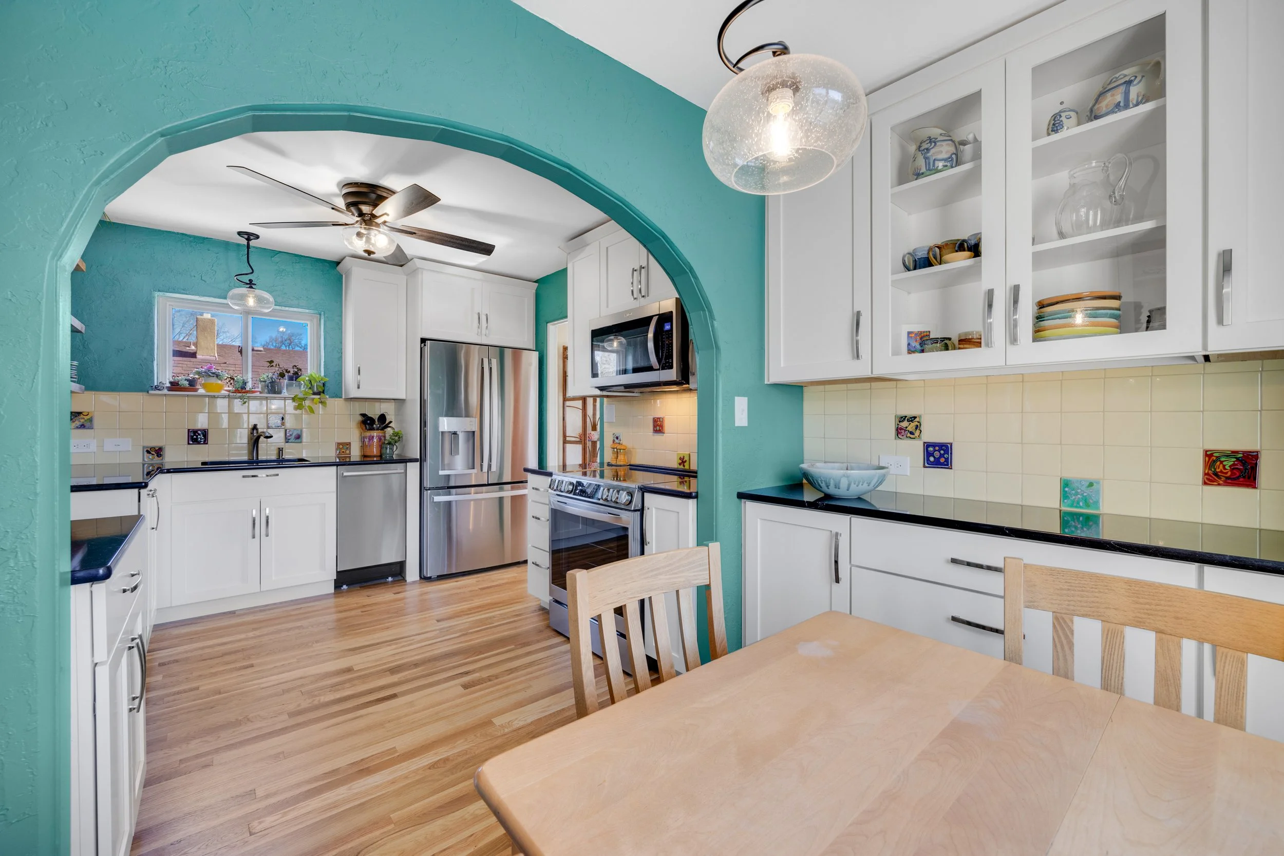 This Treasured Gem in Old Colorado City reflects the vibrant spirit of its homeowner, who loves bold color and craved a kitchen that felt like a warm haven during the long winter months. The cabinetry was completely reimagined to provide storage and functionality the space had never known, transforming the room into a truly workable hub. A soft, buttery backsplash set the tone, accented with hand-painted tiles that add story and artistry. To finish the look, a striking teal paint brought in the wild beauty and joyful energy the homeowner desired, turning this kitchen into a heartfelt expression of personality and home.